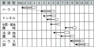 盛夏の栽培を避けるように播種期を選ぶ。