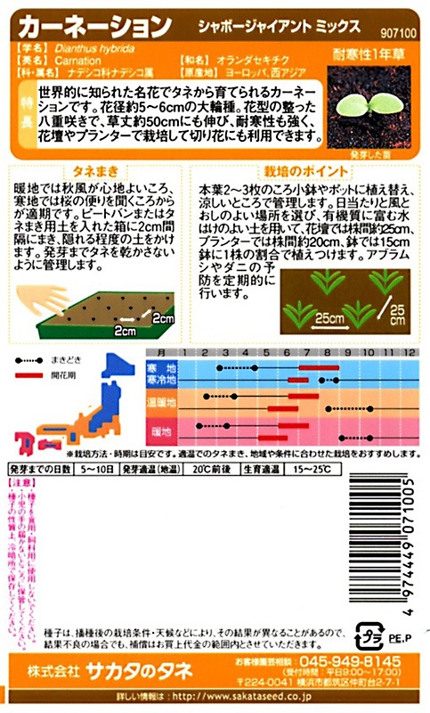サカタのタネ 実咲200 カーネーション シャボージャイアントミックス 小袋[907100]【取り寄せ注文】※通年商品【2026年春種予約商品】