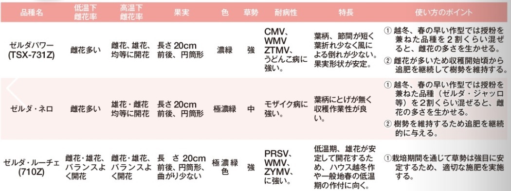 ・ゼルダネロと比較して、低温時期も雄花、雌花がバランスよく開花する。
