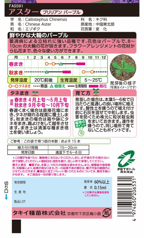 タキイ NL300 アスター ブリリアンパープル 小袋 [FAS591] 【取り寄せ注文】※春のみ商品【2026年春種予約商品】