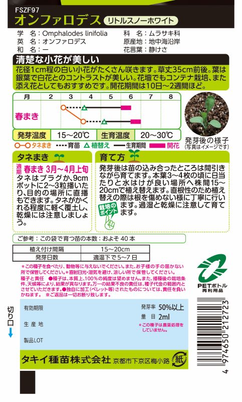 タキイ NL200 オンファロデス リトルスノーホワイト 小袋[FSZF97]【取り寄せ注文】※春のみ商品【2026年春種予約商品】