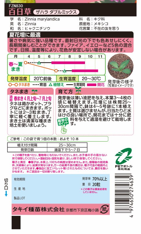 タキイ NL300 百日草 ザハラダブルミックス 小袋[FZN830]【取り寄せ注文】※春のみ商品【2026年春種予約商品】