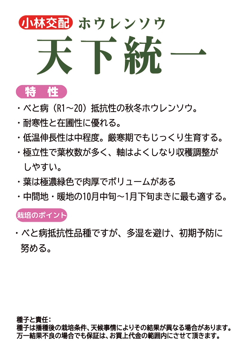 小林種苗 ホウレンソウ種子 天下統一 *種子有効期限2026年8月末