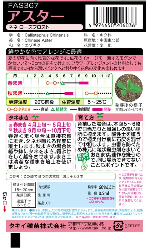 タキイ NL300 アスター ネネローズフロスト 小袋 [FAS367]【取り寄せ注文】※春のみ商品