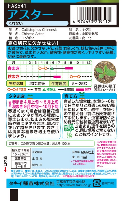 タキイ NL150 アスター くれない 小袋[FAS541]【取り寄せ注文】※春のみ商品【2026年春種予約商品】
