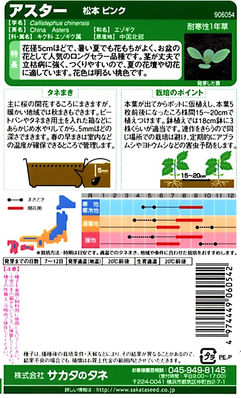 サカタのタネ 実咲250 アスター 松本 ピンク 小袋[906054]【取り寄せ注文】※春のみ商品【2026年春種予約商品】