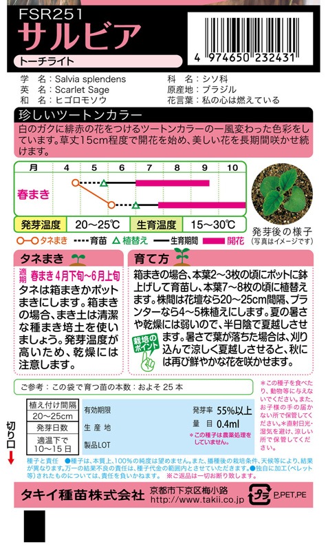 タキイ NL300 サルビア トーチライト 小袋 [FSR251]【取り寄せ注文】※春のみの商品