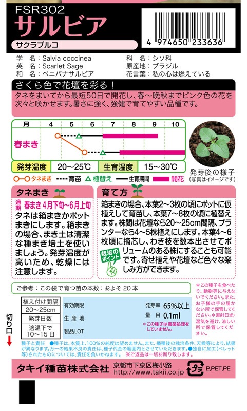 タキイ NL300 サルビア サクラプルコ 小袋 [FSR302]【取り寄せ注文】※春のみ商品