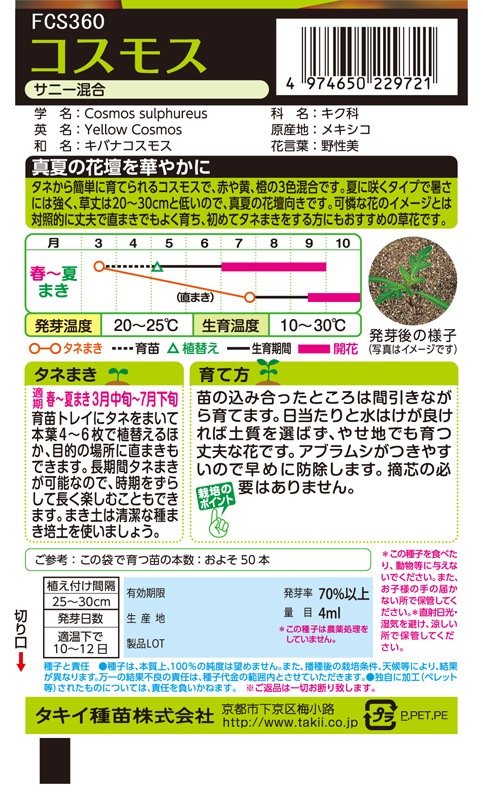 タキイ NL200 コスモス サニー混合 小袋[FCS360]【取り寄せ注文】※春のみ商品