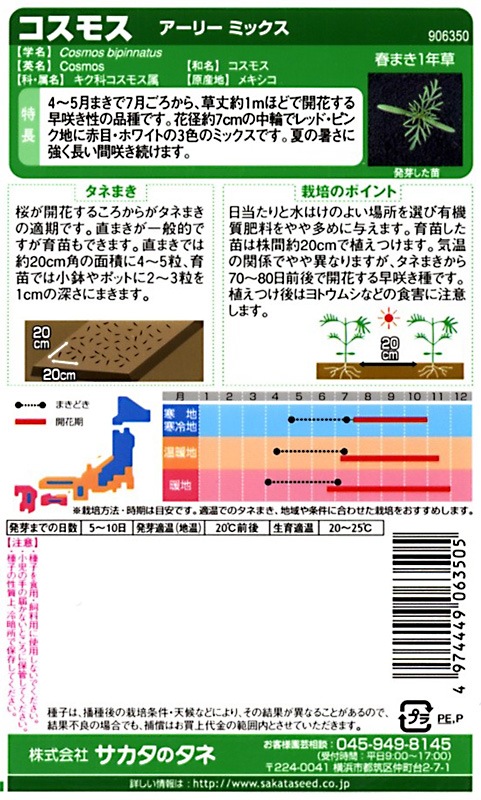 サカタのタネ 実咲250 コスモス アーリーミックス 小袋[906350]【取り寄せ注文】※春のみ商品【2026年春種予約商品】