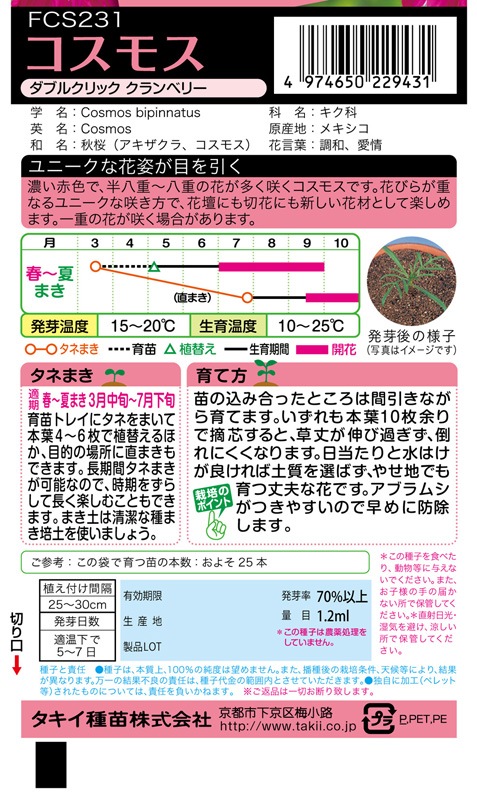 タキイ NL300 コスモス ダブルクリック クランベリー 小袋[FCS231]【取り寄せ注文】※春のみ商品