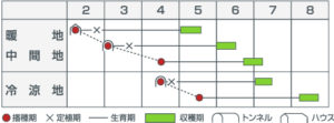 栽培時期や適期収穫を遵守する。
