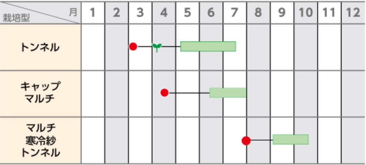 ・草勢はやや強く、つるは伸びないため少ないスペースで栽培でき、
