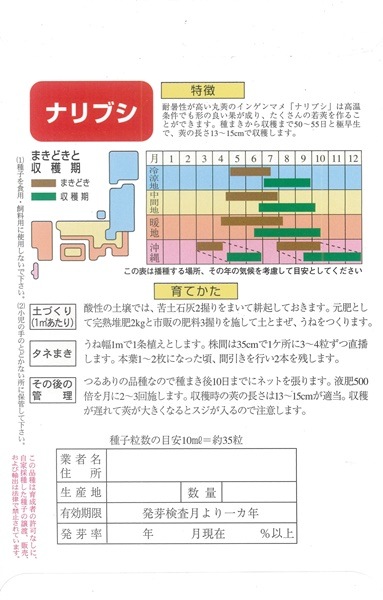 フタバ種苗 莢インゲン種子 ナリブシ[うちなー交配]【取り寄せ注文】[PVP]【2026年春種予約商品】