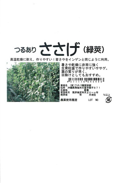フタバ種苗 つるありささげ 緑種[うちなー交配]【取り寄せ注文】【2026年春種予約商品】