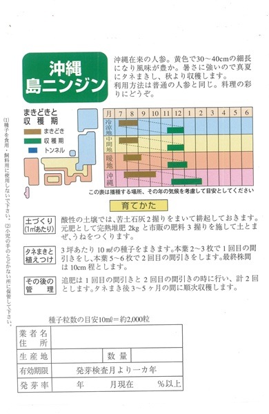 フタバ種苗 ニンジン種子 沖縄島人参[うちなー交配]【取り寄せ注文】【2026年春種予約商品】
