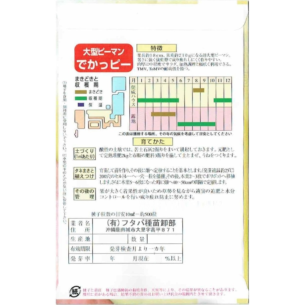 フタバ種苗 ピーマン種子 でかっピー[うちなー交配]【取り寄せ注文】【2026年春種予約商品】