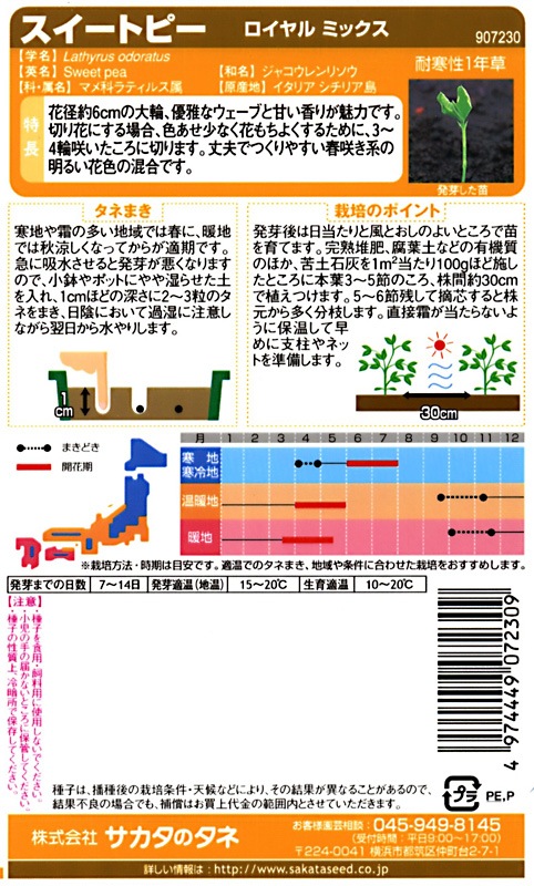 サカタのタネ 実咲200 スイートピー ロイヤルミックス 小袋[907230]【取り寄せ注文】※秋のみ