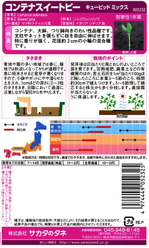 サカタのタネ 実咲350 コンテナスイートピー キューピッド ミックス 小袋[905232]【取り寄せ注文】※秋のみ商品
