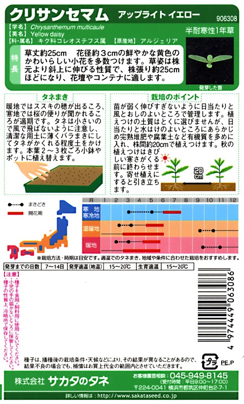 サカタのタネ 実咲250 クリサンセマム アップライト イエロー 小袋[906308]【取り寄せ注文】※通年商品