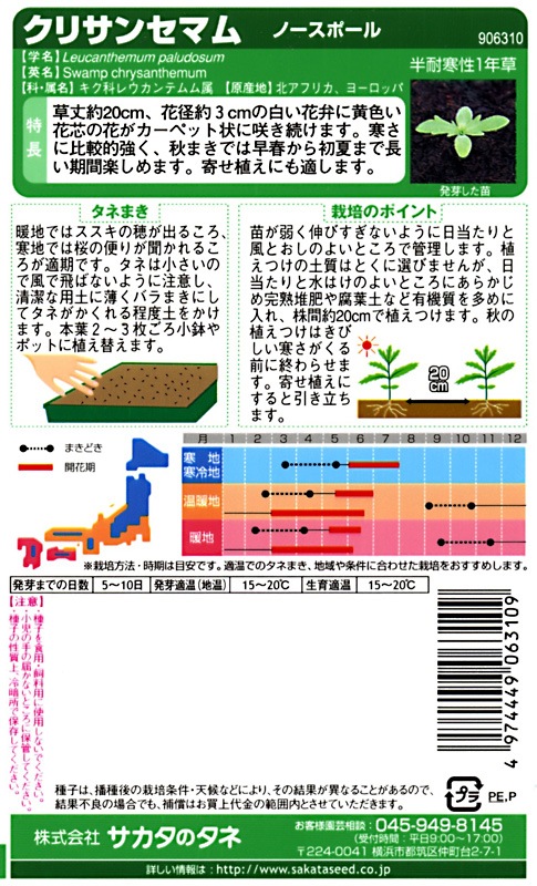 サカタのタネ 実咲250 クリサンセマム ノースポール 小袋[906310]【取り寄せ注文】※通年商品