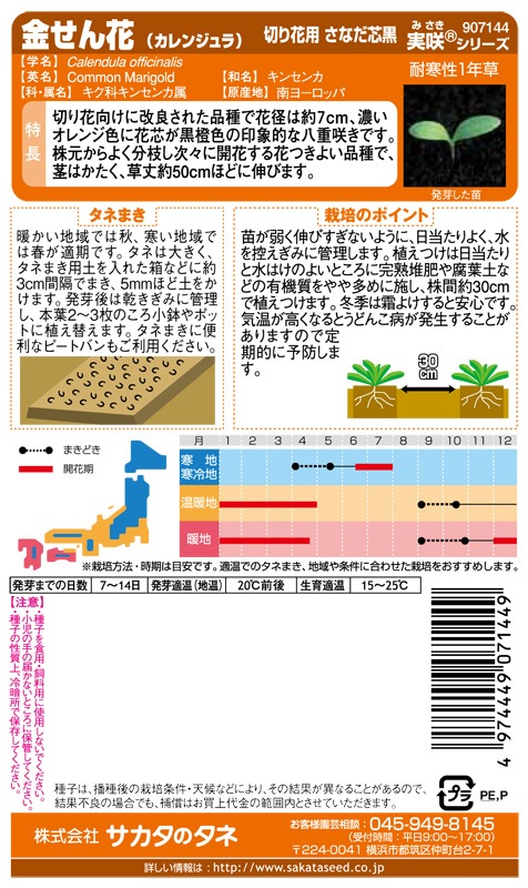 サカタのタネ 実咲200 金せん花(カレンジュラ)さなだ芯黒 小袋[907144]【取り寄せ注文】※通年商品