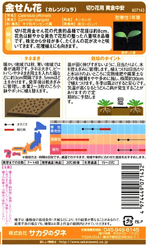 サカタのタネ 実咲200 金せん花(カレンジュラ) 切り花用 黄金中安 小袋[907143]【取り寄せ注文】※通年商品