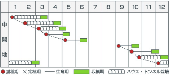 ハウス栽培や寒冷紗トンネル栽培でも葉色が映えます。