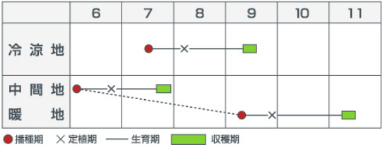 ※中間地・暖地の7月播種の作型は定植後の乾燥、高温条件が予想されますので