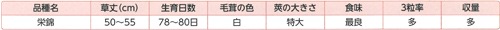 ・芳香があり、風味豊かで食味最高の白毛極早生品種。