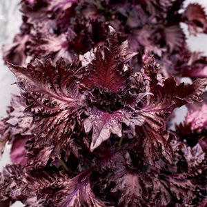 ・葉は濃赤紫色で光沢があり、肉厚の大葉でやわらかい。