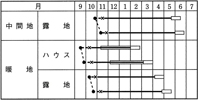 ・早まきを避け、本葉4~5枚を目安に越冬させる。
