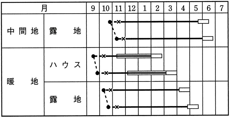 ・早まきを避け、本葉4~5枚を目安に越冬させる。