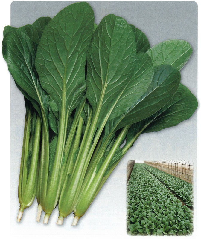 濃緑で白さび病に強い、春~夏まきでじっくり生育する中生種!