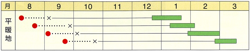 ※早まきしすぎると花蕾の形、粒が乱れる事があるので極端な早まきは避ける事。