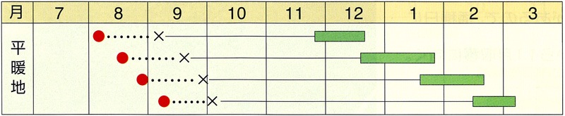 8月中下旬~9月上旬まき1月~3月上旬収穫。