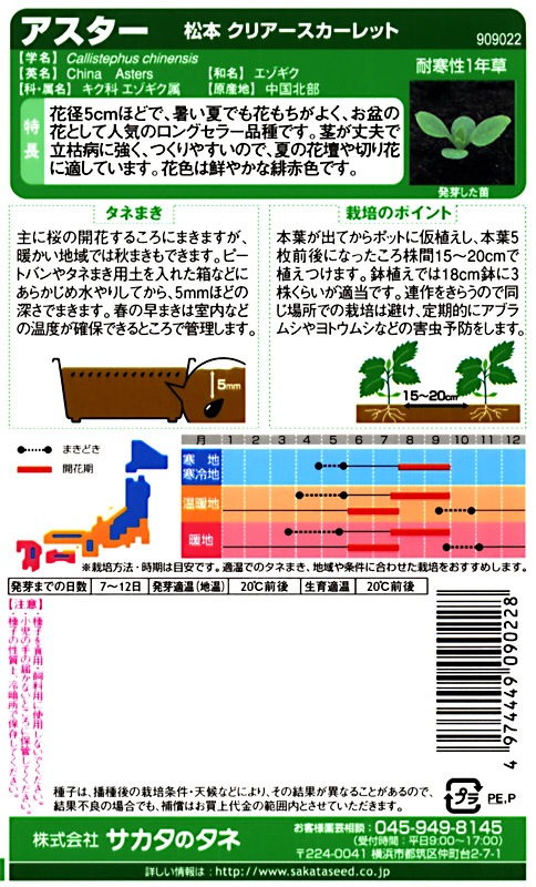 サカタのタネ アスター 松本 クリアスカーレット お徳用ボリュームパック[909022]【取り寄せ注文】※春のみ商品【2026年春種予約商品】