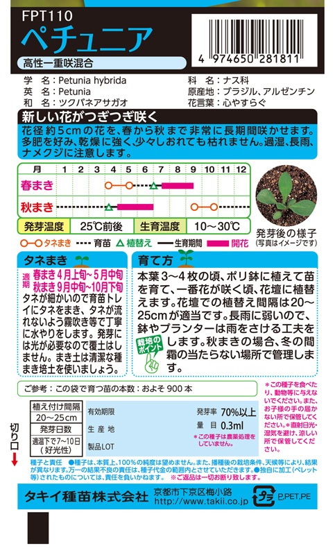 タキイ NL150 ペチュニア 高性一重咲混合 小袋[FPT110]【取り寄せ注文】※春のみ商品【2026年春種予約商品】