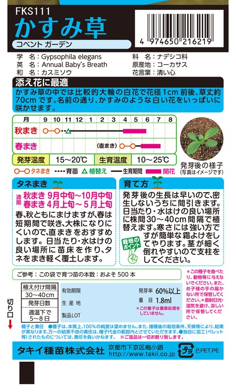 タキイ NL150 かすみ草 コベントガーデン 小袋[FKS111]【取り寄せ注文】※通年商品